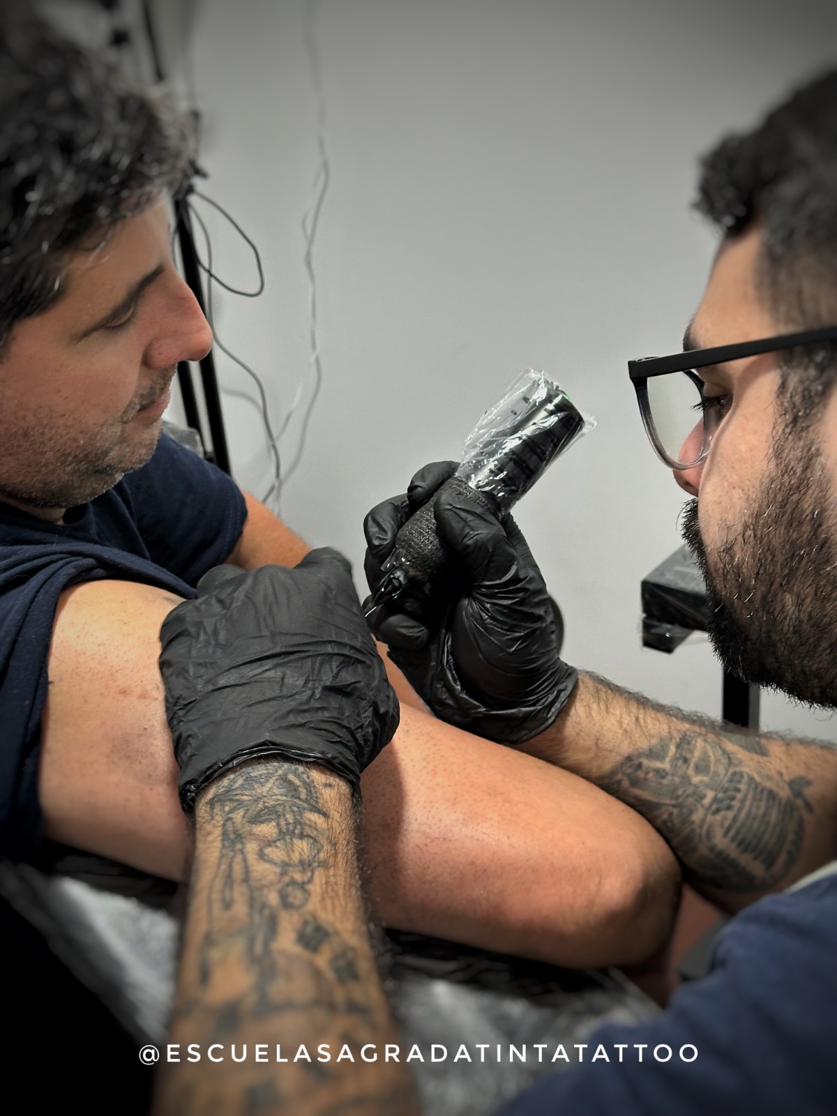 Somos tatuadores profesionales que no solo transmitimos técnicas, sino que acompañamos y guiamos a nuestros alumnos durante el curso y en su camino como artistas.